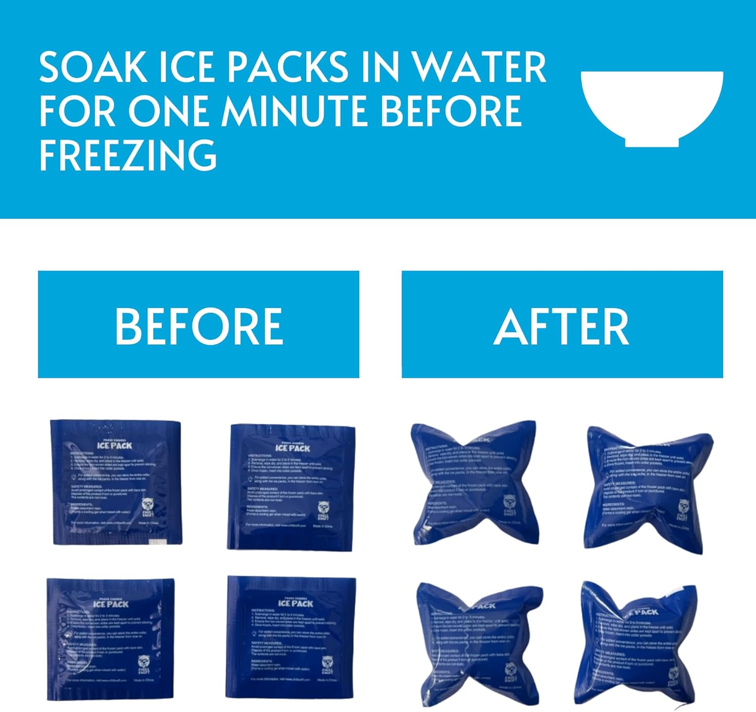 Available in three sizes: – Small (4 ice packs) for neck circumferences 13’’ to 16’’, Medium (5 ice packs) for necks 17’’ to 20’’, and Large (6 ice packs) for necks 24’’ to 28’’. Ensure the perfect fit with a detailed measurement guide, accommodating up to a 0.5’’ variation for ultimate comfort just like a dog cooling bandana.