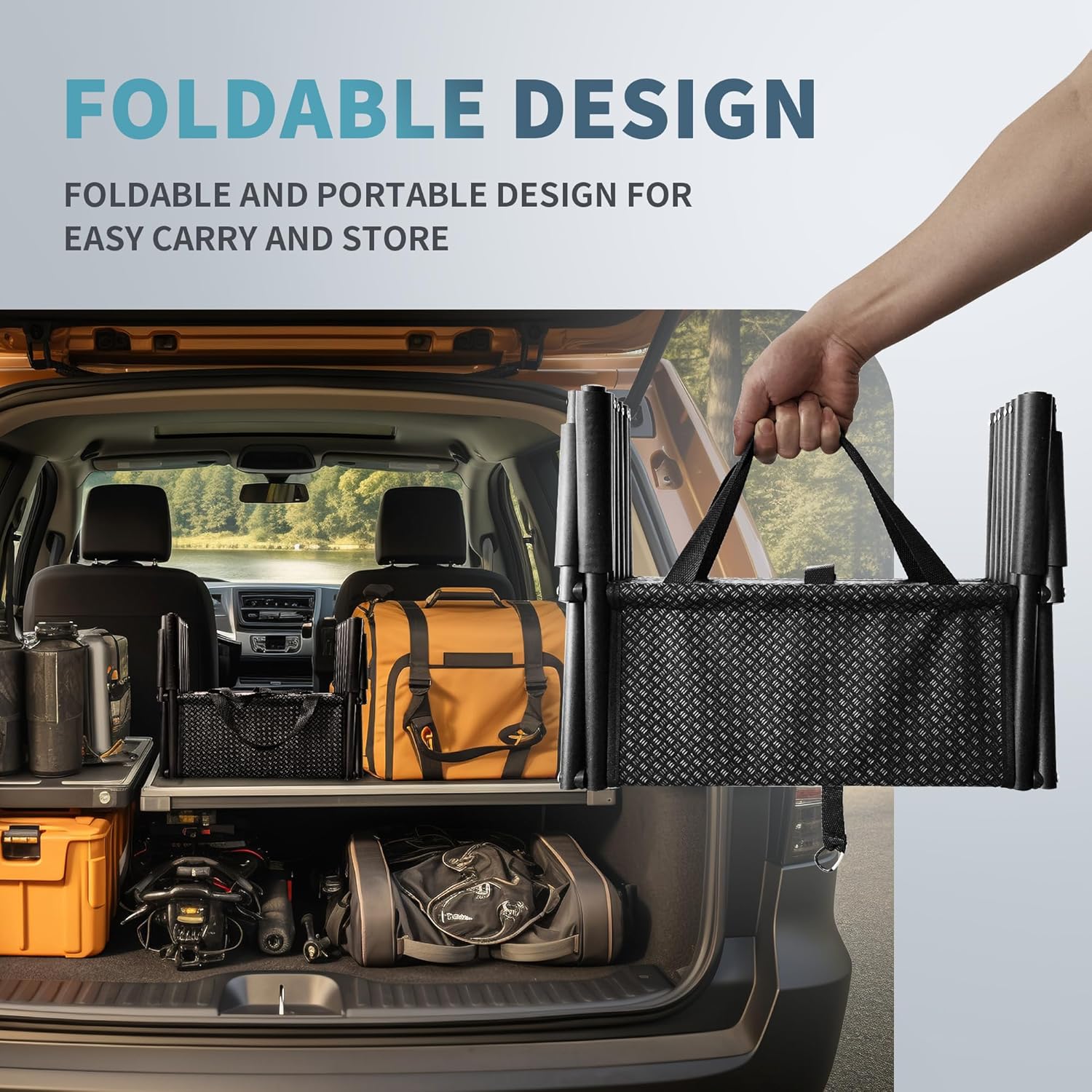 Foldable & Portable: The dog car ramp is designed to be foldable for easy storage and carry. It can be carried by hand easily and compact space-saving storage.