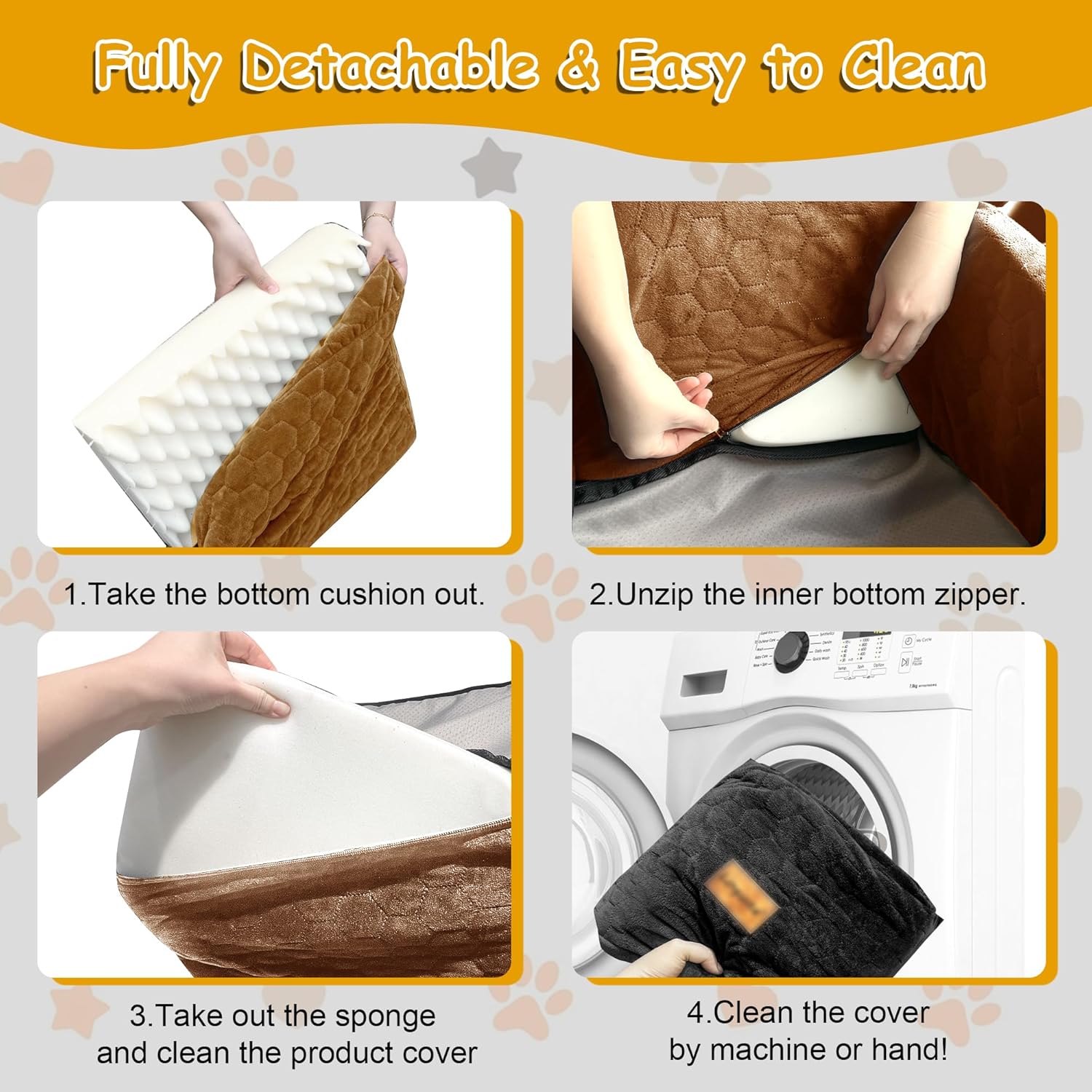 【Multi-scene Use and Easy Maintenance】: This dog car seat is not only suitable for use in cars but can also be used at home, outdoors, in a tent, or anywhere you can imagine. It features large capacity storage side pockets on both sides, providing a convenient spot to store doggy snacks, puppy kibble, and other essentials. No installation required – our dog booster seat is ready to use right out of the box. It comes vacuum-packed and fully expands to its optimal shape within 24 hours. The dog booster seat is fully removable and washable. Open the bottom zipper, take out the sponge, and clean the cover, ensuring your pet always has a clean and comfortable space.