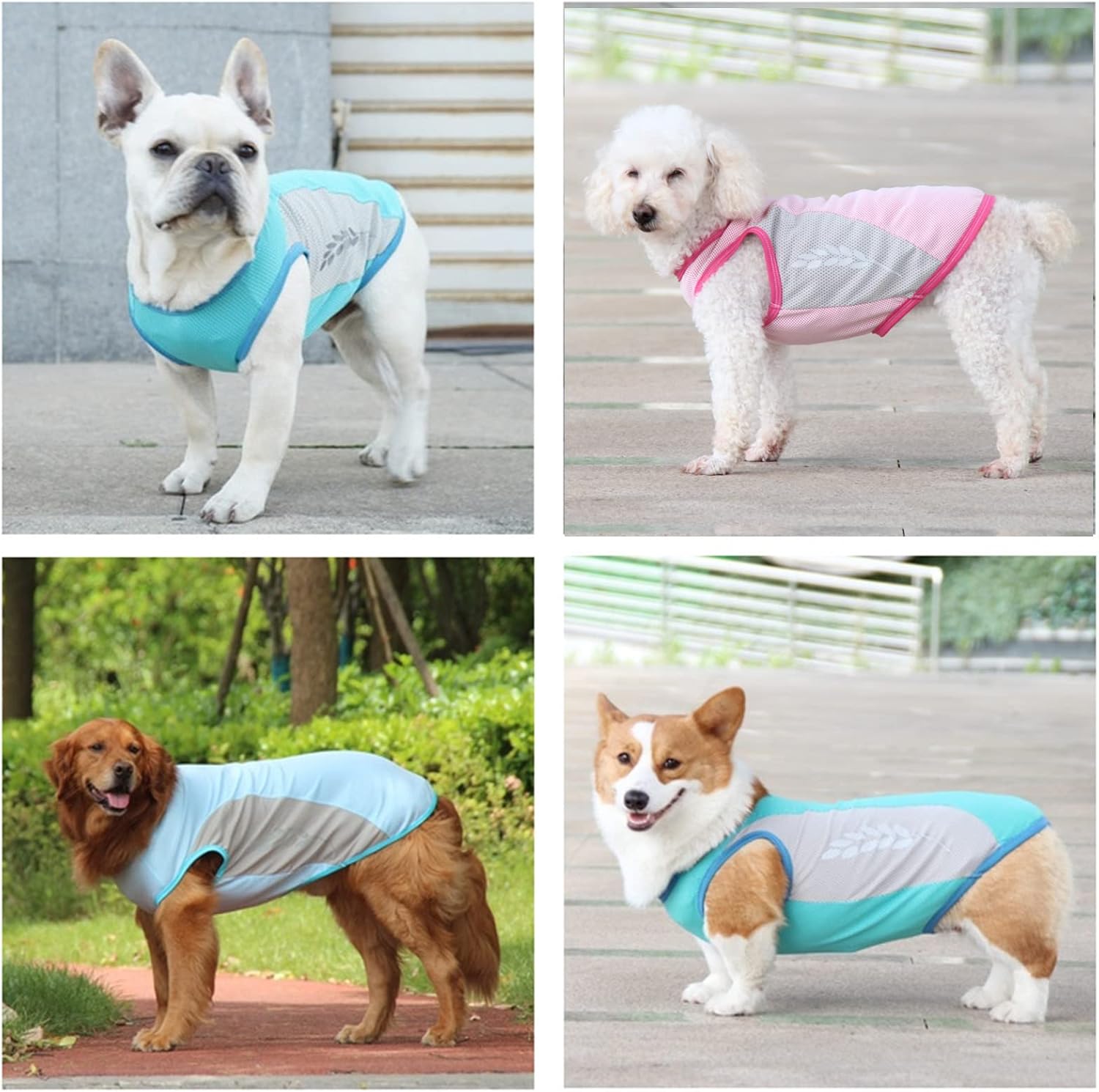 Just add water to start the effect of this evaporative cooling vest for dogs. Liquid water to water vapor, temperature drops, bring your dog ice feel. This puppy cooling shirt also prevents the strong sunlight from hot summer and makes dog feel like in cool swamp.
