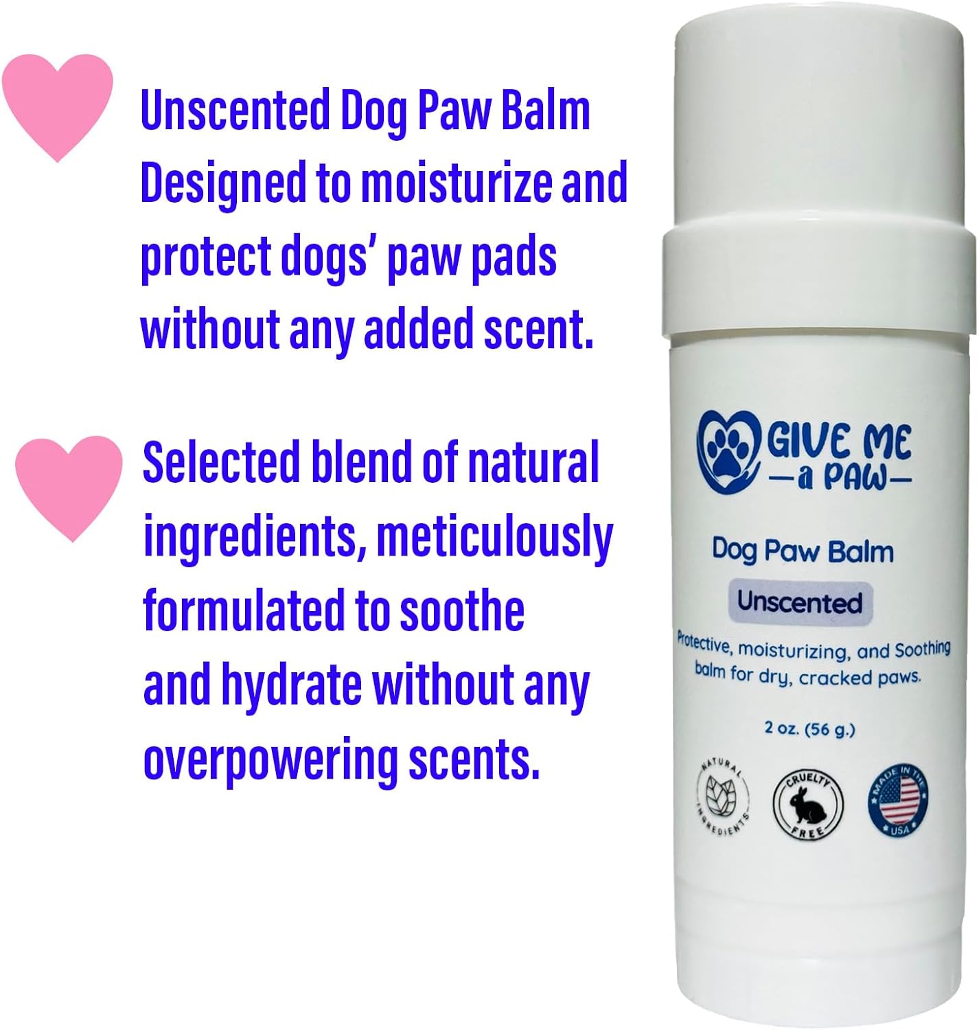 Dog Paw Balm Unscented Twist-up Tube 2oz (56g) – Moisturizing & Protecting Paw Balm for Dogs, Paw Balm Stick, Unscented for Sensitive Noses. No Hidden Ingredients or Additives! Soothing Dog Paw Balm.