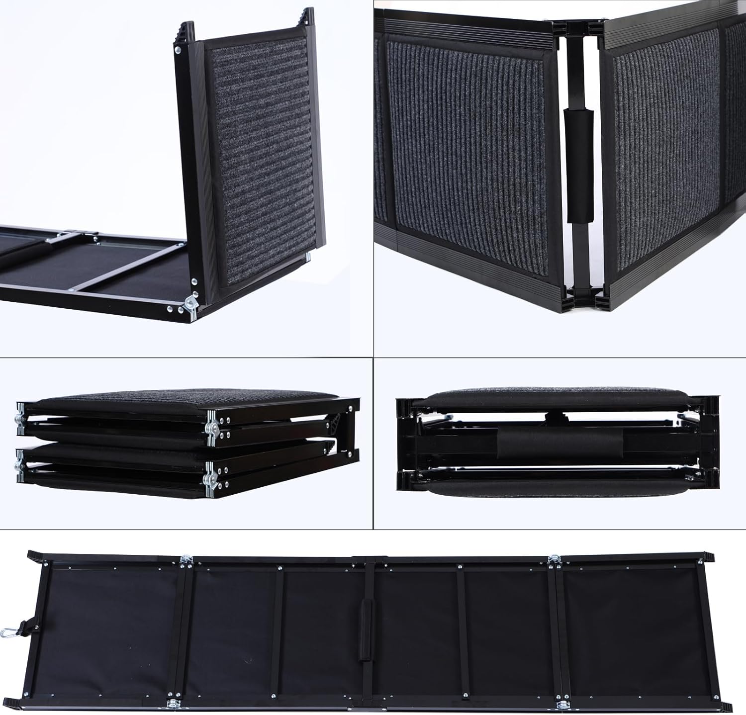 【Longer Length, Gentle Angle Dog Ramp】 : The length of the dog car ramp is increased to 71 inches, allowing for a smoother, gradual climb at an angle between the pet ramp and the car. It works really well compared to lifting your dog into the car or trying to get them to “jump” into the car. Makes it easier for short-legged, older, disabled or injured dogs to get in and out of a car, SUV or truck.