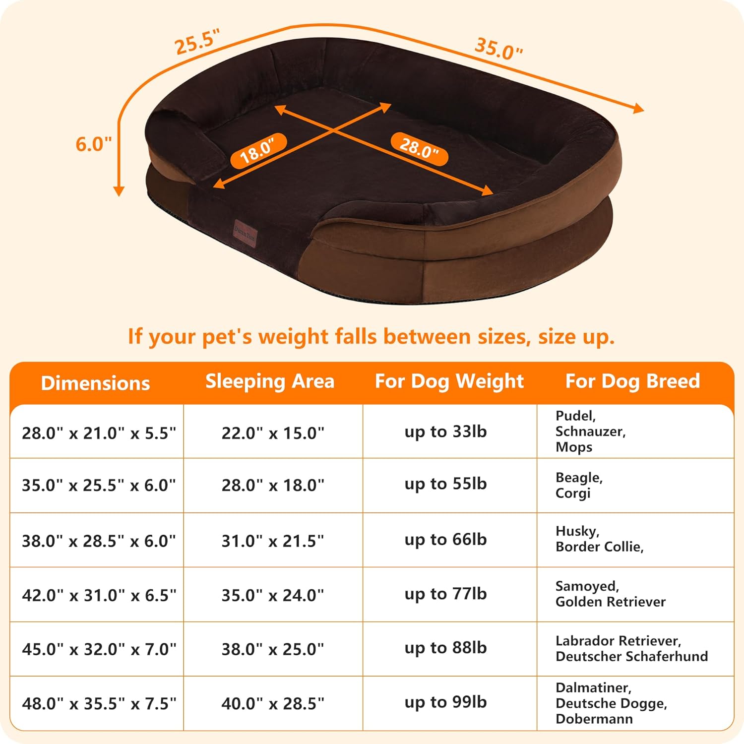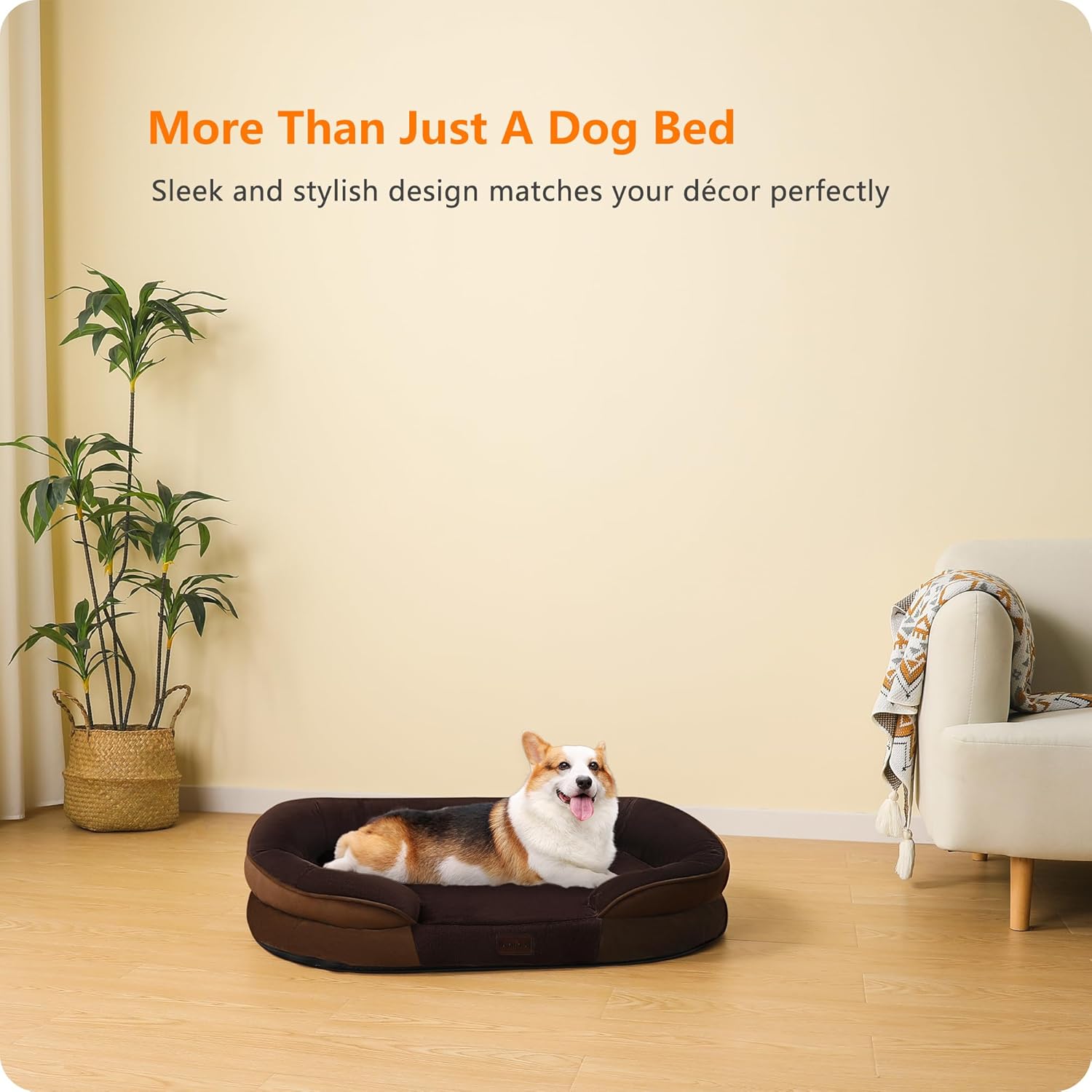 8 reviews for Dwanton Orthopedic Dog Bed for Medium Dogs, Waterproof Dog Sofa with Egg Foam Support, Washable Pet Bed with Four Sided Bolster Cushion, with Removable Cover & Non-Slip Bottom, 35 Inches, Brown