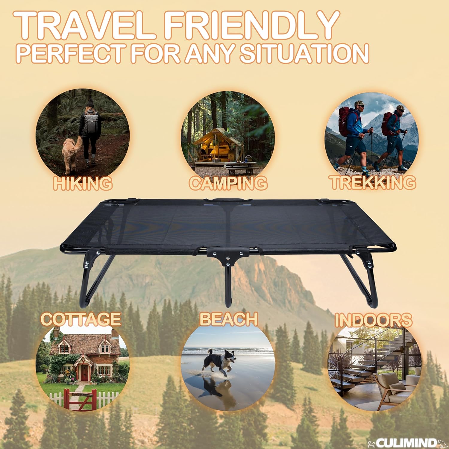 PORTABILITY WITHOUT COMPROMISE – The Lightweight, QUICK-Open Foldable design of our CULIMIND Elevated Dog Bed ensures it’s instant setup operation for any anywhere. Set up is effortless—unfold and it’s ready to go, No tools needed, Space saving storage. Our pet’s comfort zone can now travel with you, from sunny picnics to overnight camping.