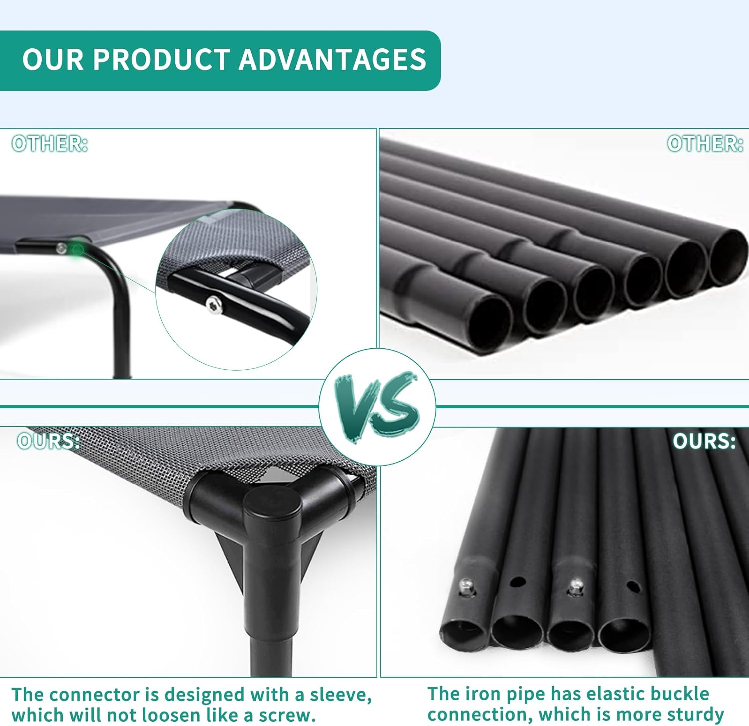 🐕DURABLE DESIGN: The well-built frame helps the pet bed be stable and safely raised, allowing your dog to rest easily – even if your dog uses it as a trampoline, the non-slip feet add extra stability, bouncing up and down in the air! Additionally, our outdoor dog beds are extremely lightweight and easy to move, providing real comfort for dogs in unfamiliar environments.
