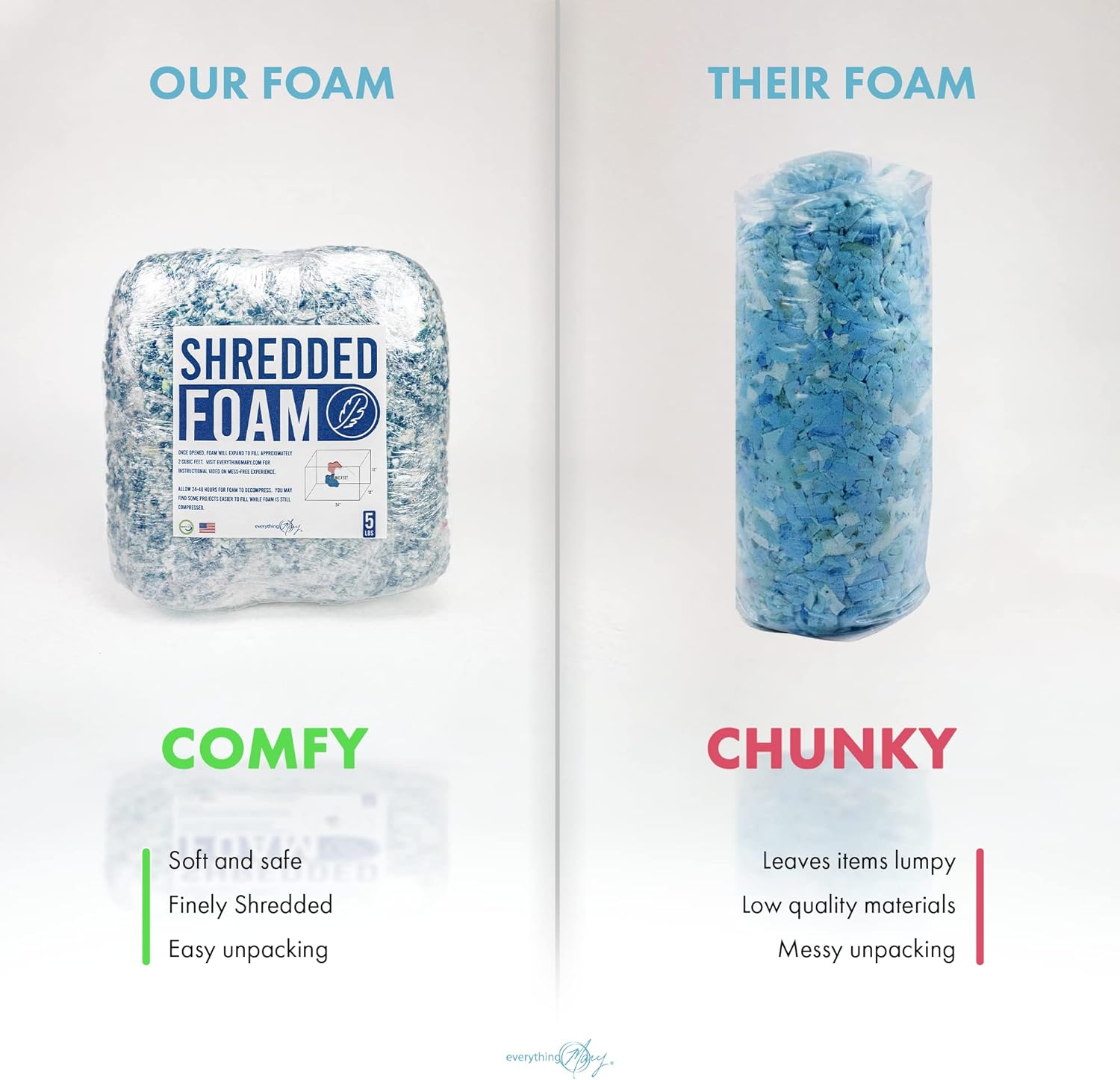 Everything Mary Shredded Memory Foam 5lbs – for Bean Bag, Pillows, Dog Bed, & Stuffed Animals – CertiPUR-US Certified Safety & Durability