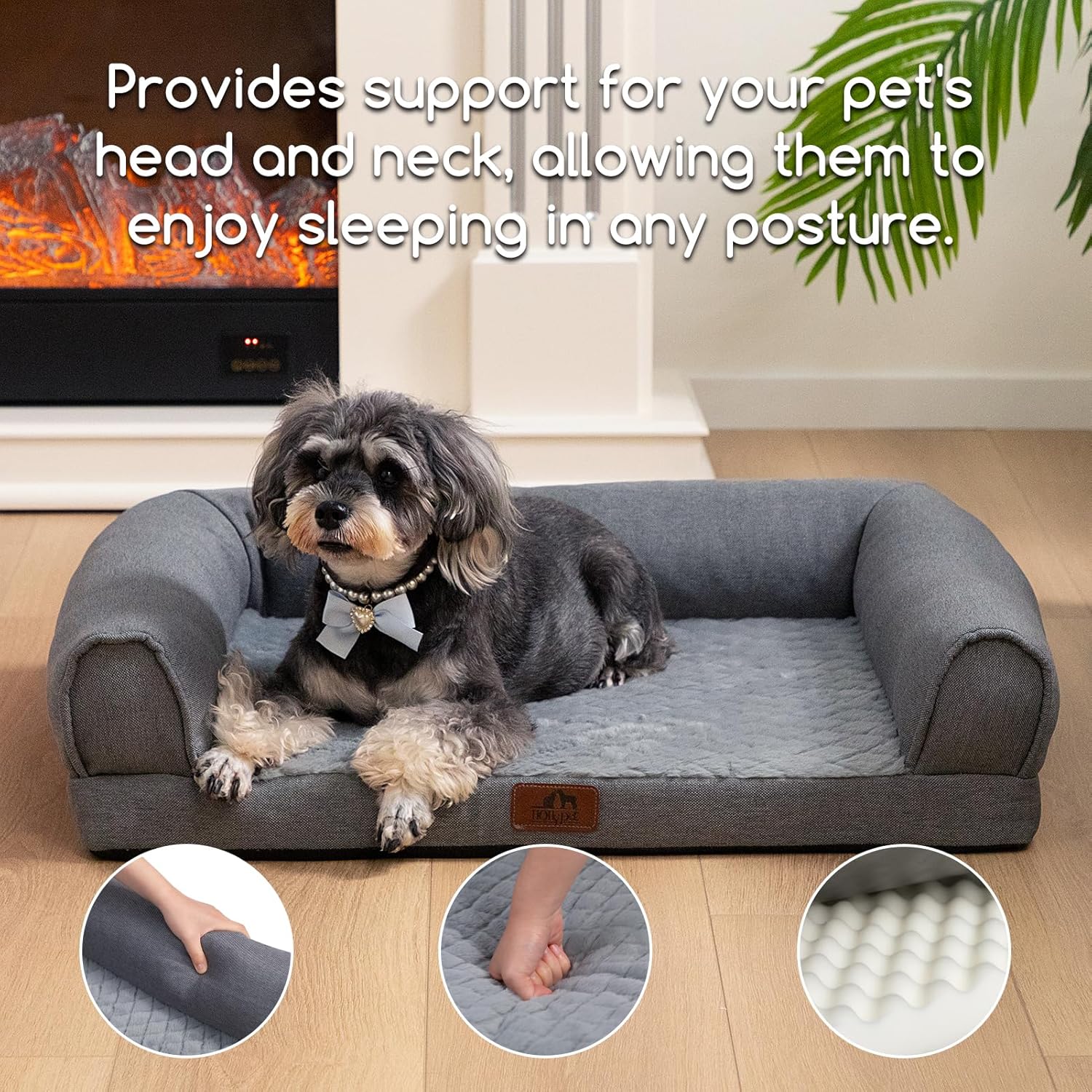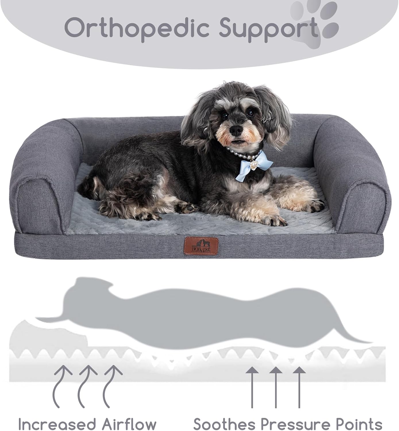Hollypet Orthopedic Dog Bed for Medium Dogs, Supportive Foam Dog Pet Couch with Removable Washable Cover and Non-Slip Bottom, Waterproof Lining Dog Sofa Bed, Gray, M (28 * 22.5 * 7.5)