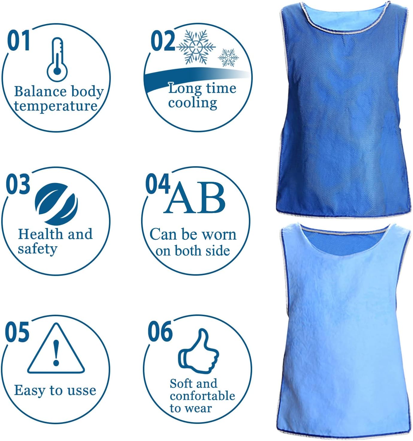 【Lasting Cooling Easy Usage】: Soak the ice vest in tap water or cold water to active for 5 minutes. After the fabric absorb water fully, wring out any excess water without leaving any water drops, and then wear the vest. You will feel the cooling effect quickly, and it will provide instant relief and comfort from the heat for hours. Remains hydrated for up to 4-5 hours/time