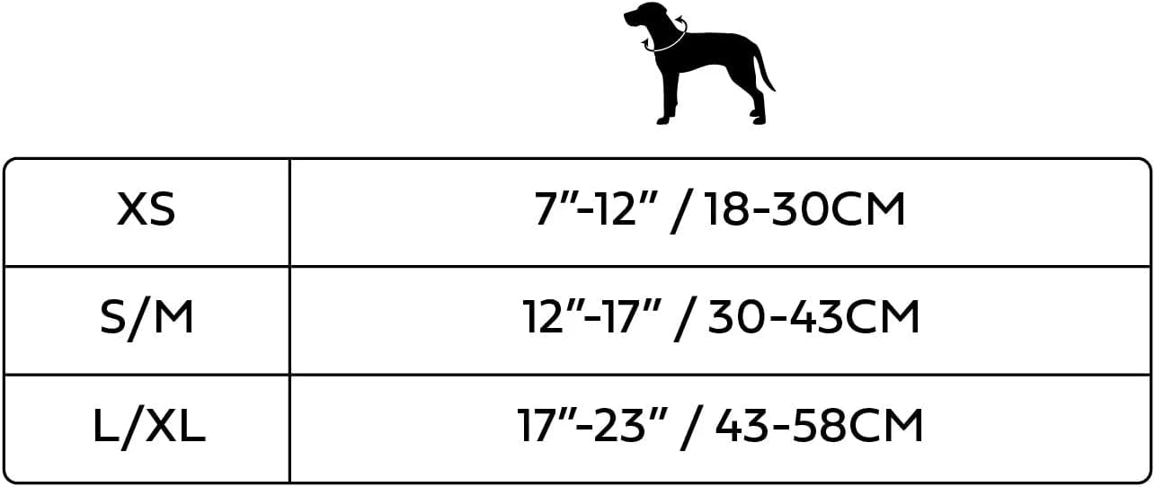 Moved to Florida with frenchies which overheat easily, I purchased 3 types this one so far is definitely the best, it’s very flexible on size I got a large for my larger necked one but it can actually fit my little one too, plenty of flexibility on size. Came with a nice pouch to keep it in a good place. I am so far leaning towards these for all 3 of them. Waiting on one more kind. Let you know if something changes. Neck sizes of my frenchies 23″ 26″ 29″( approximately