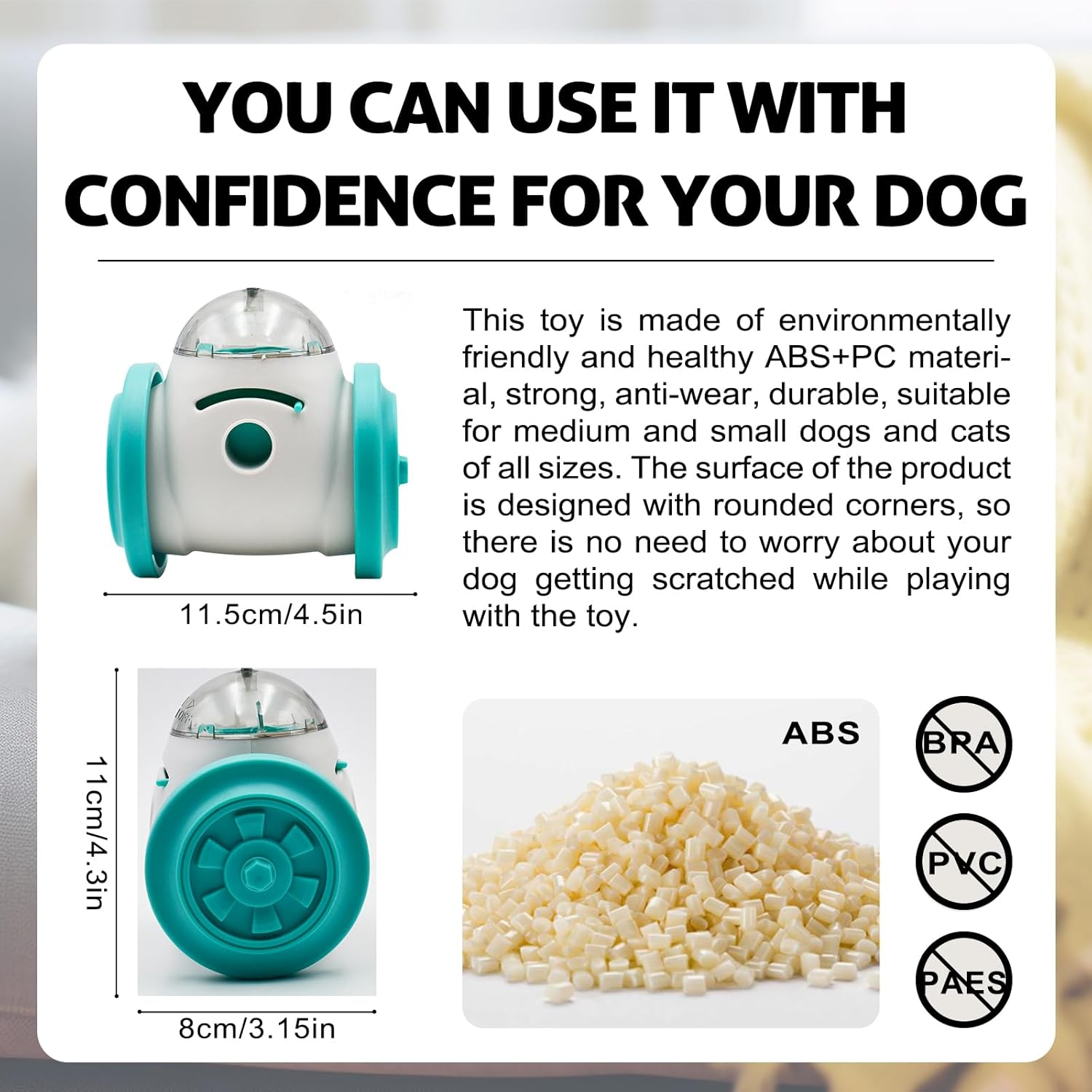 [Sturdy and not easy to damage]: This toy is made of environmentally healthy ABS+PC material, which is sturdy, wear-resistant and durable. It is suitable for medium and small dogs and cats of all sizes. The surface of the product is designed with rounded corners, so there is no need to worry about your dog being scratched when playing with the toy.