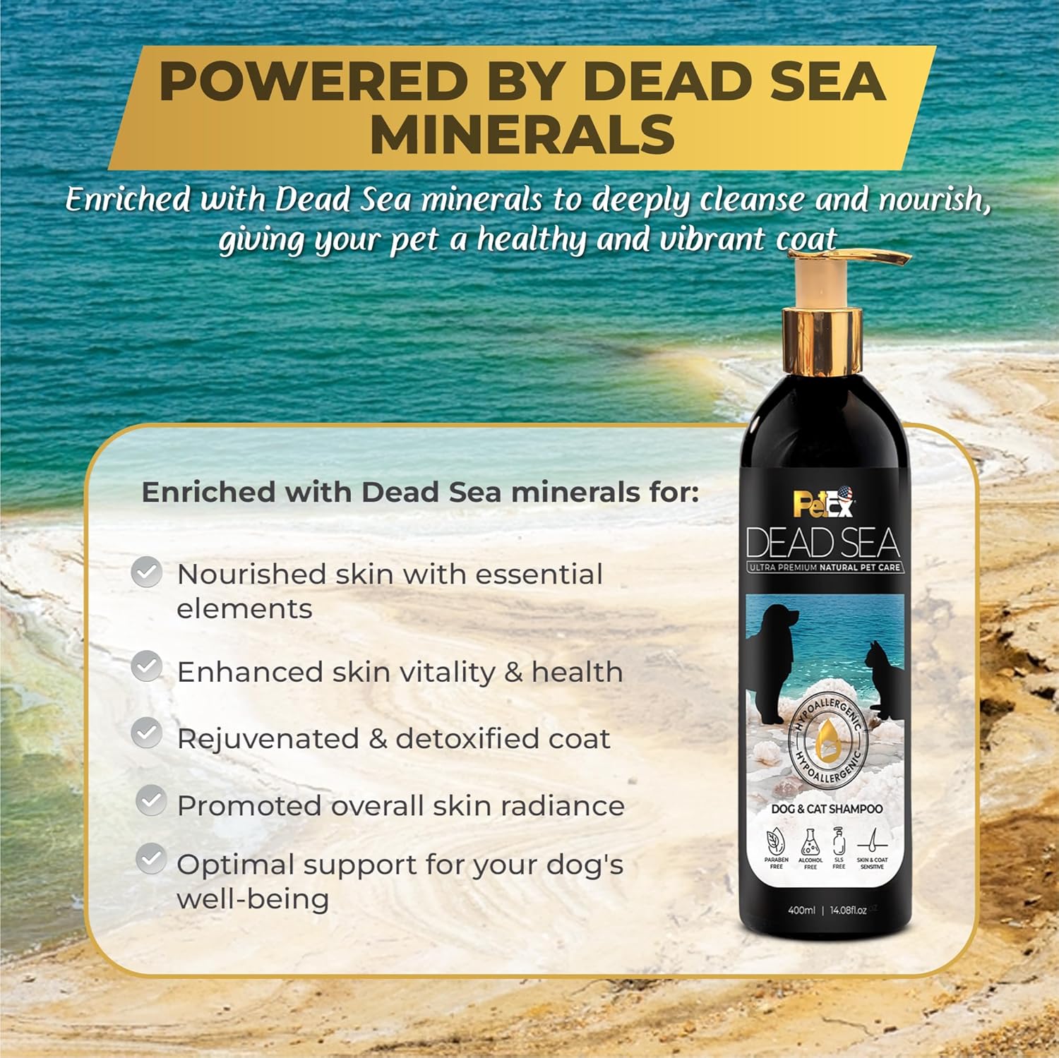 ENRICHED WITH MINERAL-RICH DEAD SEA INGREDIENTS: Packed with essential minerals from the Dead Sea, this shampoo nourishes and revitalizes, promoting a healthy, resilient coat and soft, balanced skin.