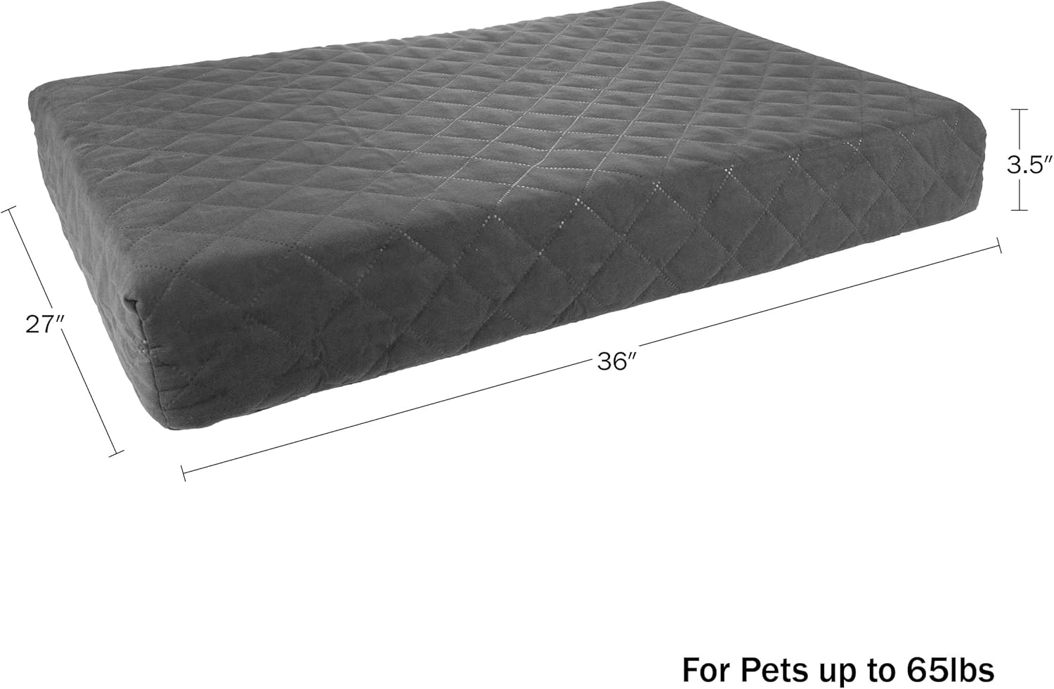 PRODUCT DETAILS – Materials: Microsuede, Polyurethane Foam, and Memory Foam. Dimensions: (L) 36″ x (W) 27″ x (H) 3.5″. PETMAKER’s Large Dog Beds are Recommended for Pets Weighing 40-75lbs. Color: Gray.