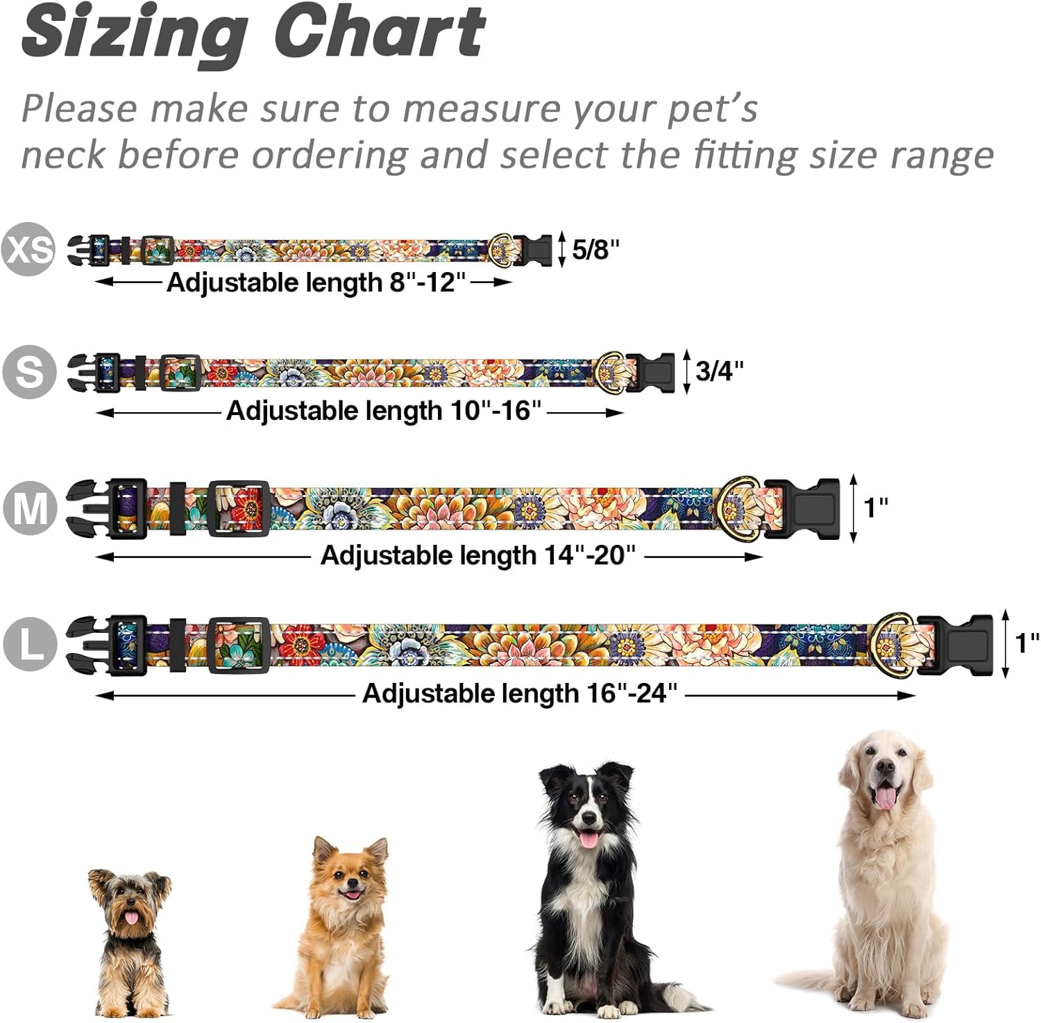 Warm Prompt: All pictures are taken with our production samples from a size of Medium. Please follow the size chart to measure your dog’s neck carefully before you place the order to ensure the collar is fit well to your dog