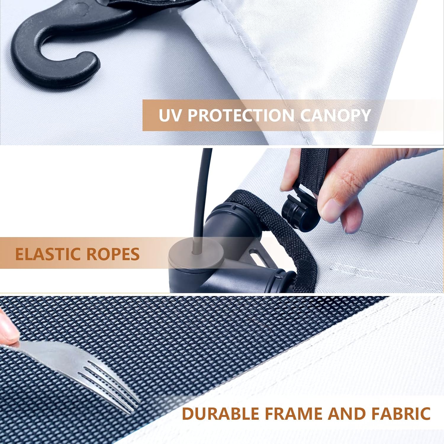 【UV Protection Canopy】- Comes with a detachable waterproof & silver-coated canopy and side shade, gives your pet full shade and block the UV rays out. You will need this pet tent when you are camping with your dog or going on a beach holiday.
