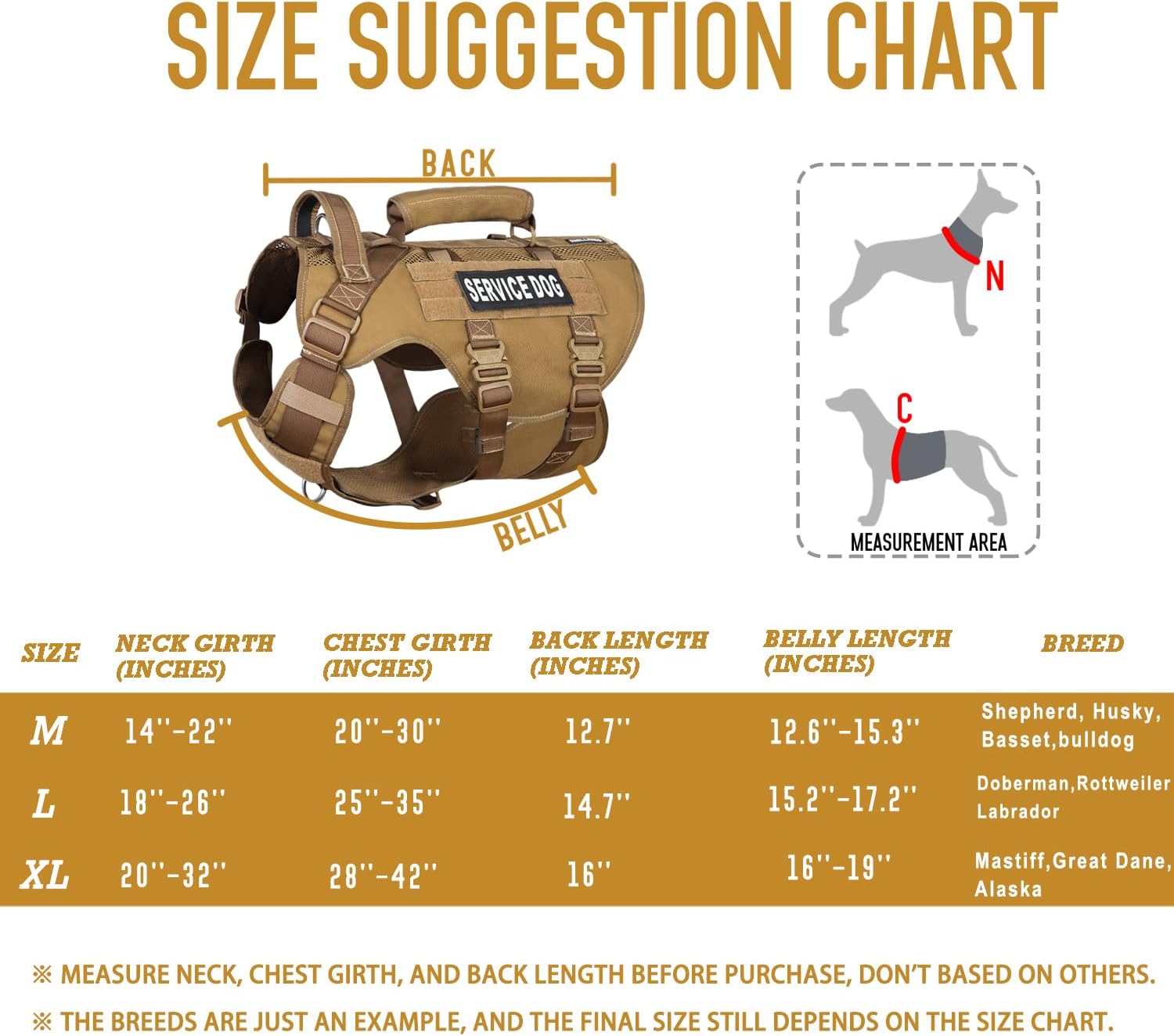 [Friendly Advice]: The dog vest is a product for dogs to wear, please place the vest away from where the dog can reach to prevent being BITTEN! Please reference to the sizing chart and measure your dog (Especially CHEST AND NECK) before purchase!