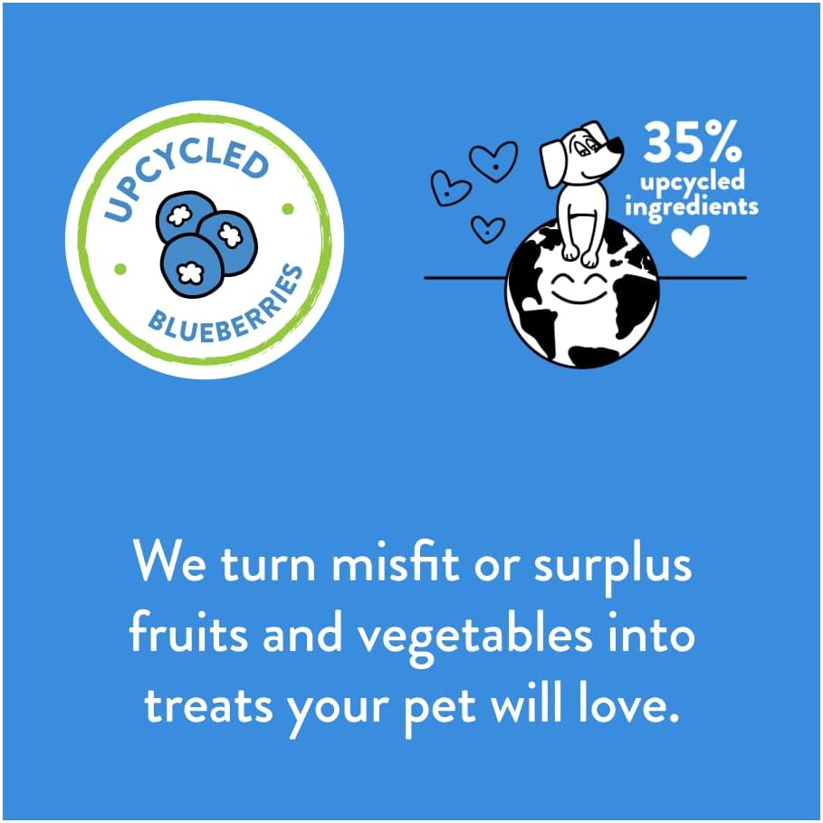 Upcycled With Care: We work with farmers to rescue their imperfect fruits and vegetables that have all the same healthy nutrients. This means every bag of our treats decreases food waste while saving valuable resources.