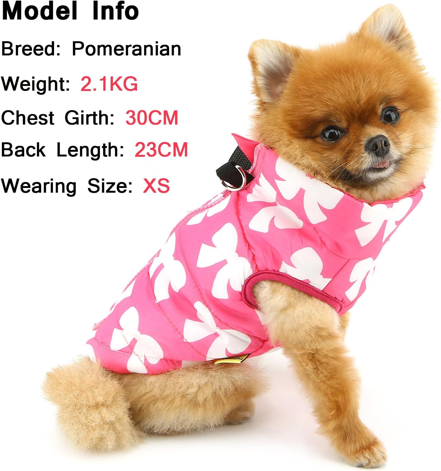 SMALLLEE_LUCKY_STORE Pet Water Resistant Winter Jacket Vest with D-Ring for Small Dog Cat Zip-up Padded Puppy Coat Chihuahua Yorkie Kitten Warm Clothes, Hot-Pink, L