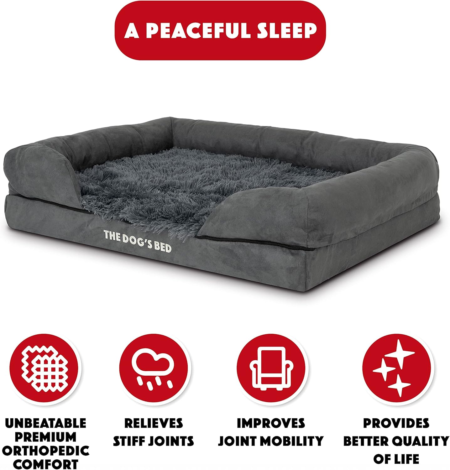 The Dog’s Bed, Medium Grey Faux Fur 30×23.5, Memory Foam, Pain Relief: Arthritis, Hip & Elbow Dysplasia, Post Surgery, Lameness, Supportive, Calming, Washable Cover,Veterinary-Approved