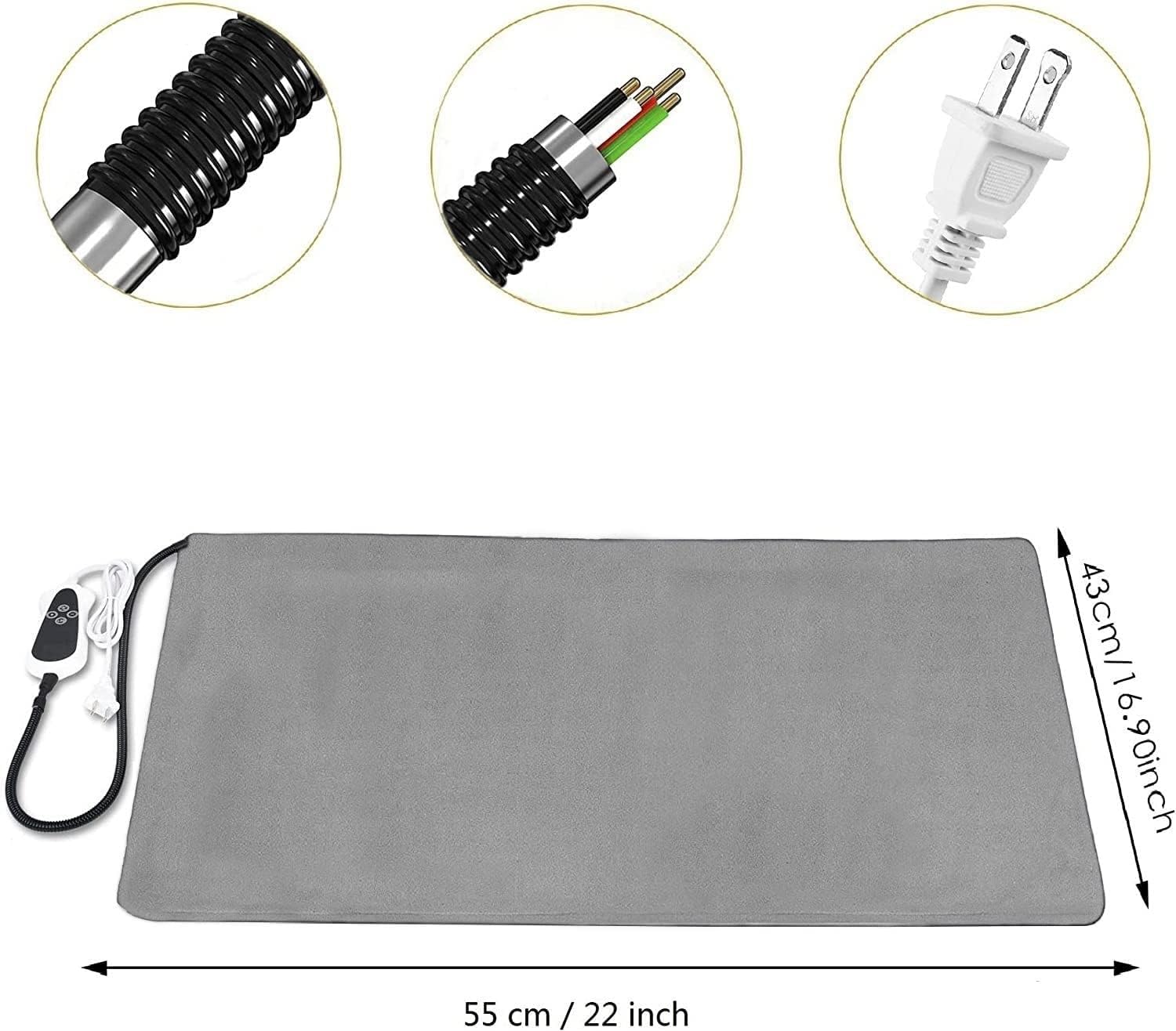 TJOY Pet Heating Pad Electric Heating Pad for Dogs and Cats Indoor Warming Mat Heated Pet Bed with Auto Power Off (M:22”x18”(Gray))