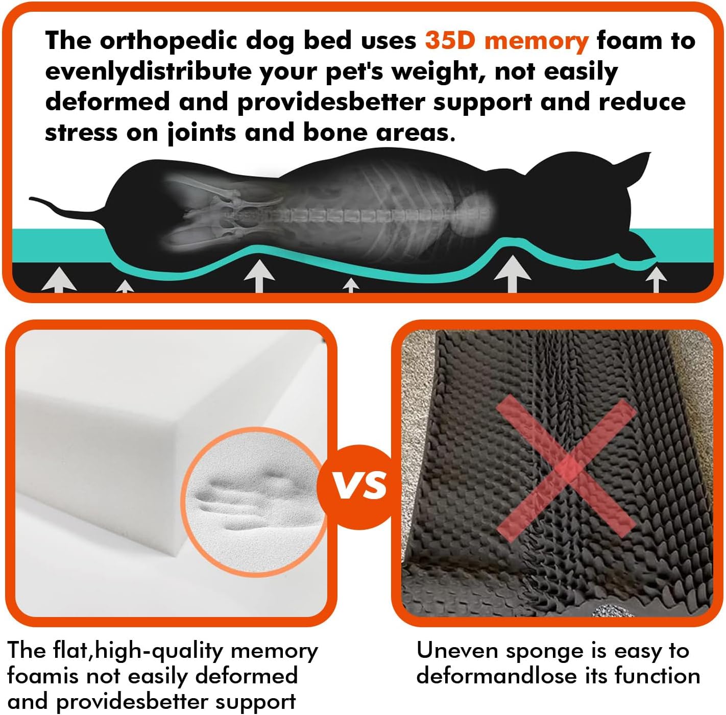 🔥【Heated Dog Bed】Far-infrared heating pad orthopedic dog bed, Upgraded heated dog bed with enlarged heating Area, with thickened 35D and flat memory foam, the sponge cloth cover has been installed, no need to do it yourself, It’s perfect for arthritis and older dogs.