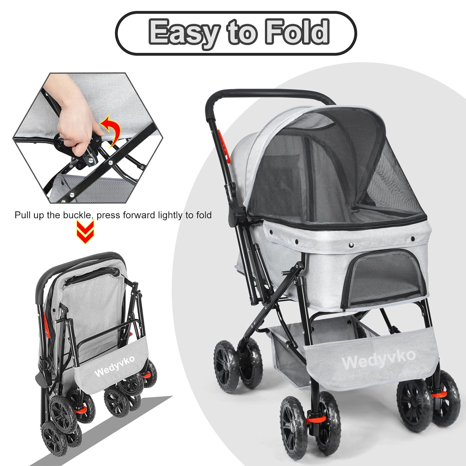 Wedyvko Medium Dog Stroller 50lb – Pets Stroller for Medium Dogs with Storage Basket & Pouch, Security Leashes, Gray